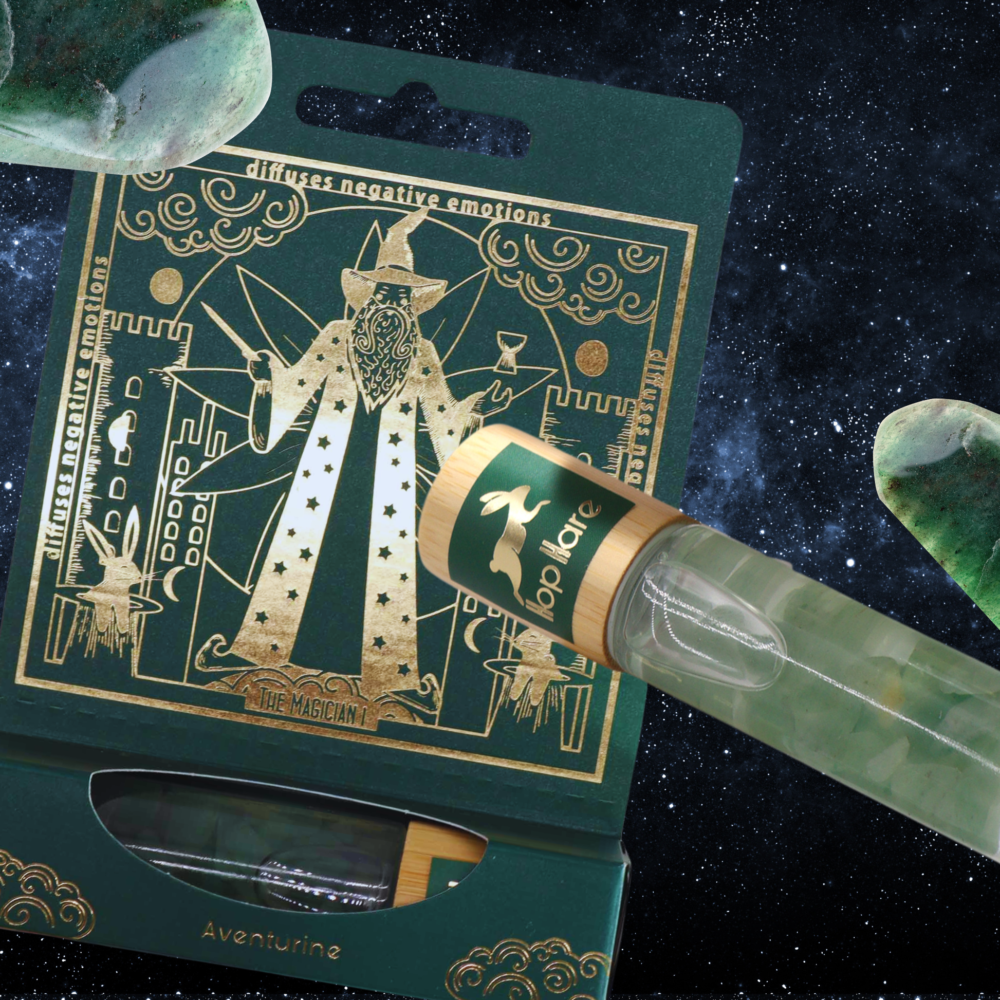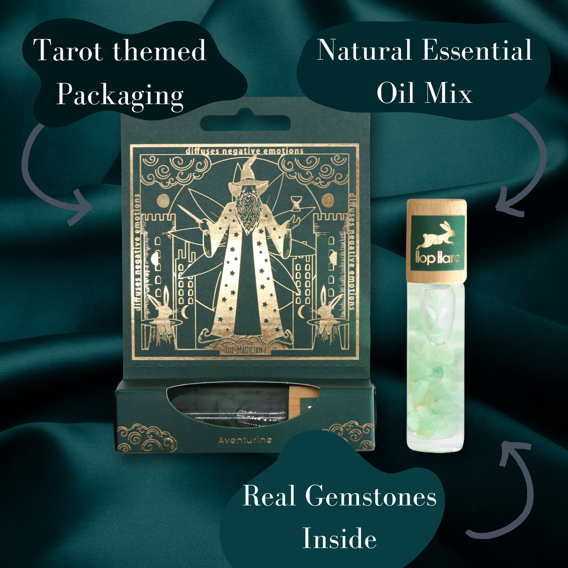 Reveal Your Inner Alchemist with The Magician Tarot Aromatherapy Roll-On. Infused with pure essential oils and the transformative energy of Green Aventurine, this roll-on is designed to awaken your vitality, promote mental clarity, and diffuse negative emotions.